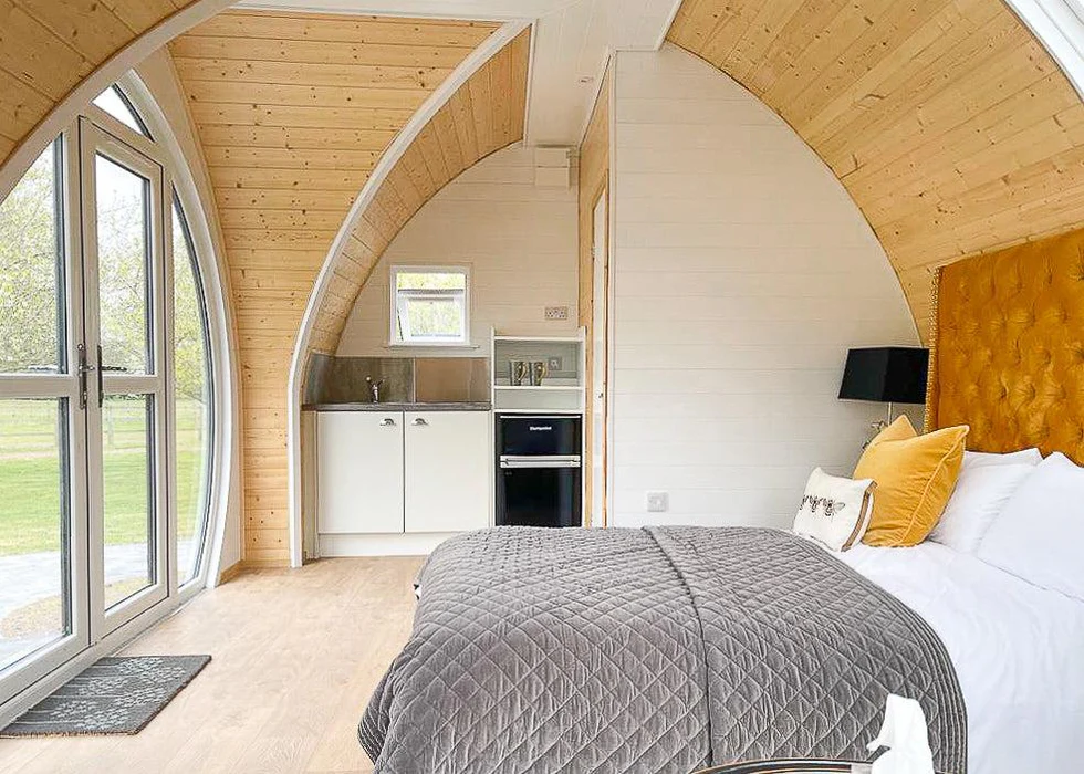 The Norton is the ultimate couple’s pod. Utilising a large living space, this unit provides a luxury glamping experience for 2 people; perfect for couples looking for a luxurious getaway. With its large circular door and spacious design, the Norton creates the perfect couple’s haven.