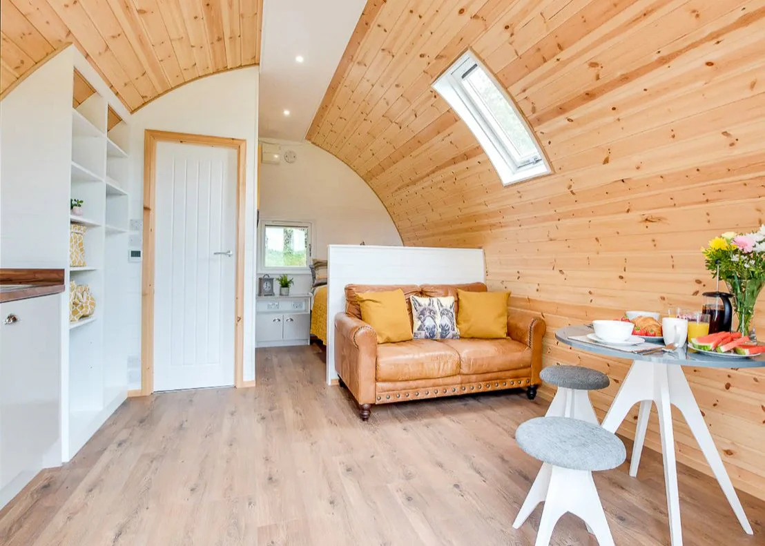 The first in our 4m wide range, our bestselling pod boasts a sizeable living space. With the ability to sleep 2-4 people, complete with all the necessities needed for a comfortable and luxurious stay, the Royal is our most popular glamping pod.